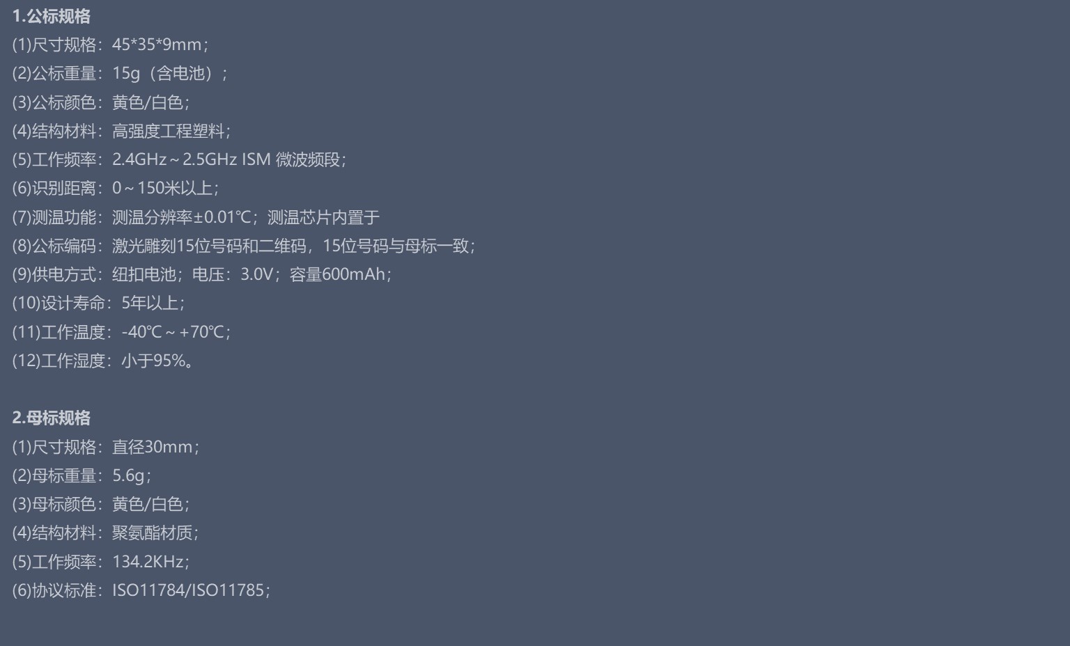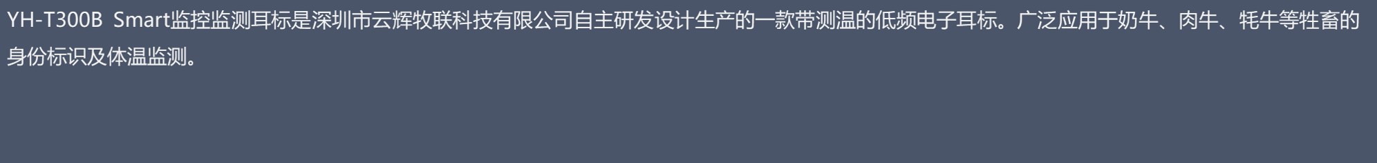 应用与奶牛、肉牛、牦牛等牲畜的身份标识及体温状态监测。