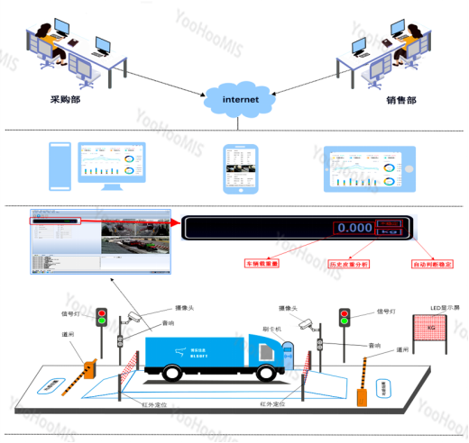 称重计量是企业物流管理中的一个必不可少的、重要的环节,这个环节和采购、销售、结算、仓储、财务管理等其他环节是紧密相连的。传统的磅房称重管理系统大部分的信息采集工作由地磅员手动完成,地磅员工作量大,很难保证工作效率及其工作质量。云辉牧联YooHooMIS智能磅房管理系统是一款基于云计算和物联网技术的智能化管理系统,主要应用于物流、仓储、加工等行业的物品称重和信息化管理。该系统采用先进的称重传感技术和高精度的电子秤设备,能够实现多种物品的称重和计量等,能为牧场提供自动化、数字化和智能化的磅房管理服务。